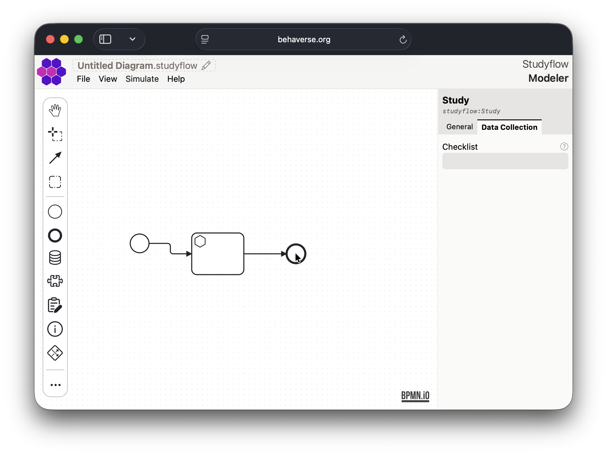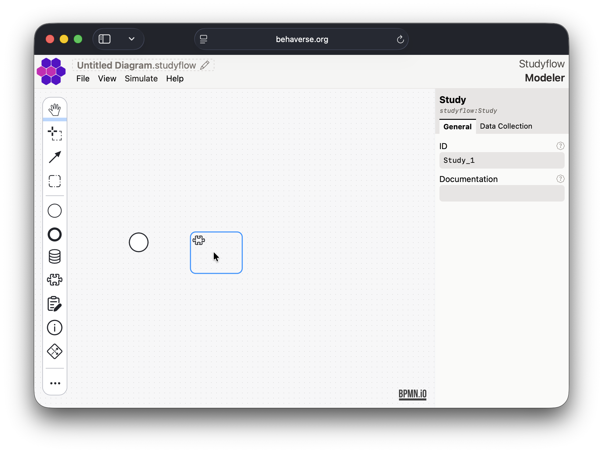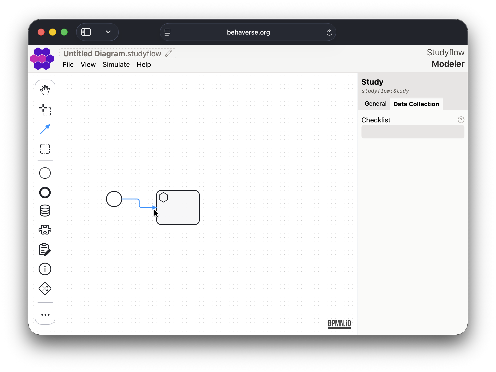 Studyflow Modeler is a webapp to design and execute studyflow diagrams. With modeler, you can visually define every step of your study, from initial conception to subject recruitment, data collection, analysis pipelines, and final reporting.
