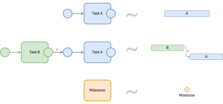 Here is an example of a Gantt task using BPMN or Studyflow: